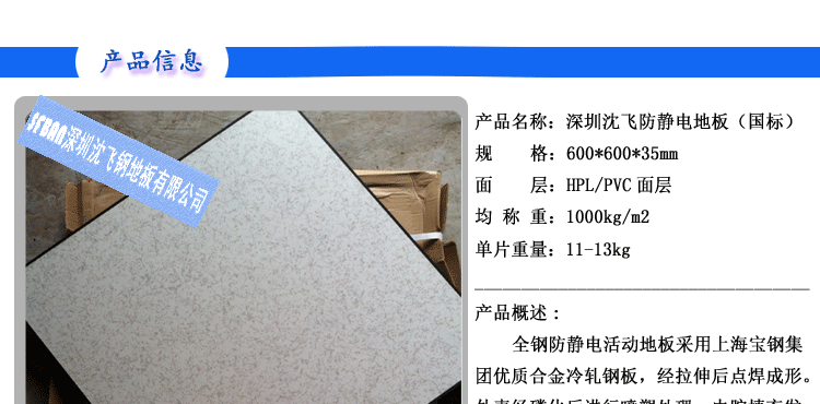 全鋼防靜電地板 【規格型號】 600×600×35mm 【產品概述】 全鋼防靜電活動地板采用上海寶鋼集團優質合金冷軋鋼板,經拉伸后點焊成形。外表經磷...